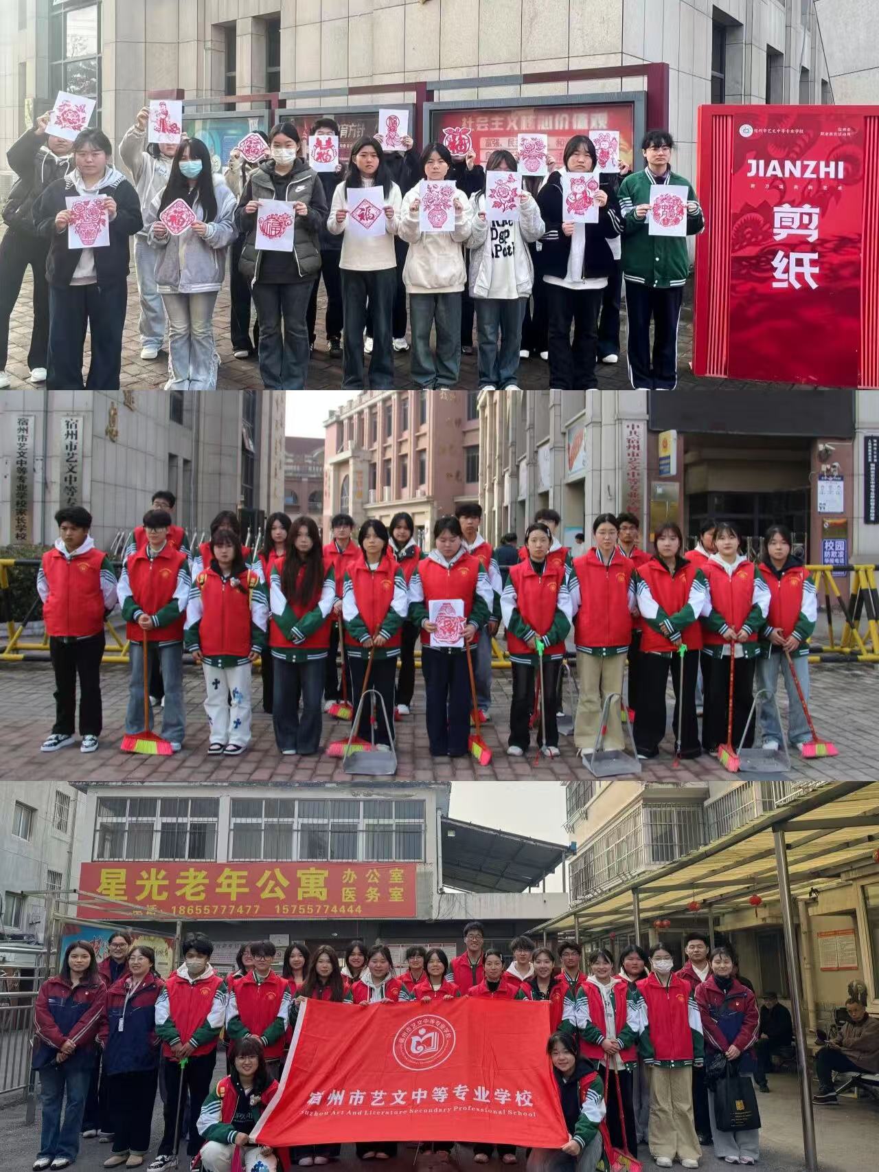 10月27日下午,校團(tuán)委、學(xué)生科、安全科負(fù)責(zé)人帶領(lǐng)20名學(xué)生志愿者一同前往星光敬老院開展“情暖重陽,愛滿夕陽——藝文學(xué)子敬老行”活動(dòng)。志愿者們身著整齊校服,帶著清潔工具、自制賀卡及剪紙作品抵達(dá)后,立即分組行動(dòng)。一組認(rèn)真清掃園區(qū),為老人營造整潔環(huán)境;另一組則陪伴在老人身邊,親切交談、傾聽故事,并幫助整理房間。