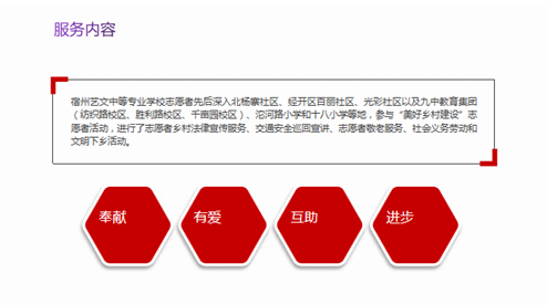 多層次,就是從市到校,從校到級部,從級部到班,三個層次的德育教育相互銜接、互為補(bǔ)充。比如:市級層面我們和關(guān)工委合作,協(xié)辦了宿州市黨是陽光我是苗書畫展,和交警六大隊合作,深入到北楊寨、池湖、沱河路小學(xué),開展民法典與交通安全宣講;學(xué)校層面開展了清明祭掃活動、組織觀看黨史、新中國史、改革開放史、社會主義發(fā)展史宣傳片、開展志愿者服務(wù)活動等,班級層面搜集了很多中職生成功范例進(jìn)行激勵,邀請五老入班講紅色故事,與每一個節(jié)日相銜接,有計劃地召開主題班會等,通過多層次的引導(dǎo),弘揚正氣,培養(yǎng)愛心,培養(yǎng)積極向上的人生觀。