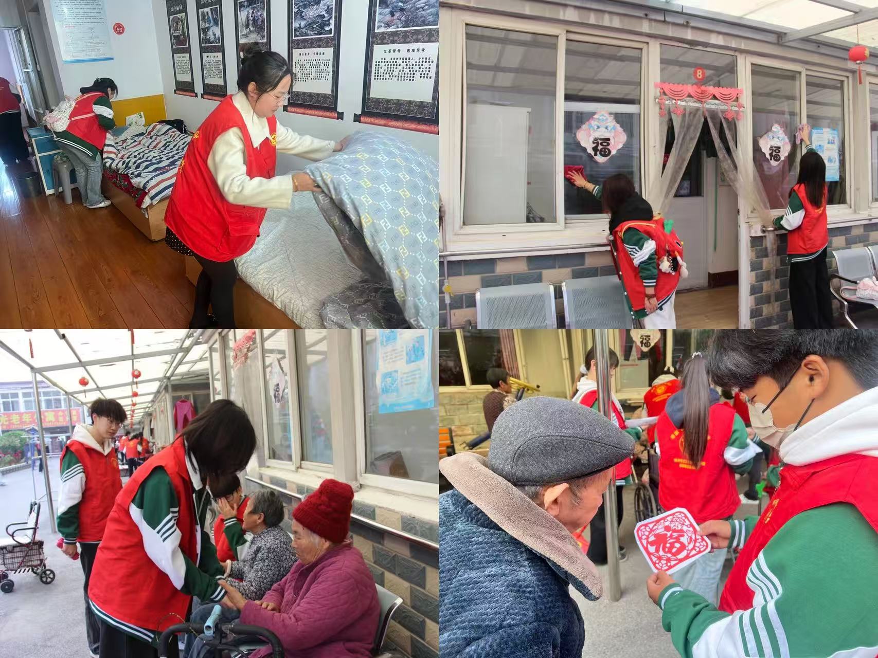 10月27日下午,校團(tuán)委、學(xué)生科、安全科負(fù)責(zé)人帶領(lǐng)20名學(xué)生志愿者一同前往星光敬老院開展“情暖重陽,愛滿夕陽——藝文學(xué)子敬老行”活動(dòng)。志愿者們身著整齊校服,帶著清潔工具、自制賀卡及剪紙作品抵達(dá)后,立即分組行動(dòng)。一組認(rèn)真清掃園區(qū),為老人營造整潔環(huán)境;另一組則陪伴在老人身邊,親切交談、傾聽故事,并幫助整理房間。